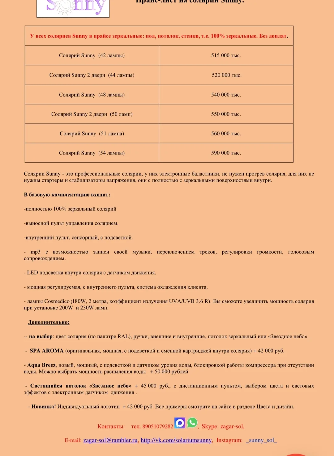 Скачайте прайс на солярии "Sunny".
